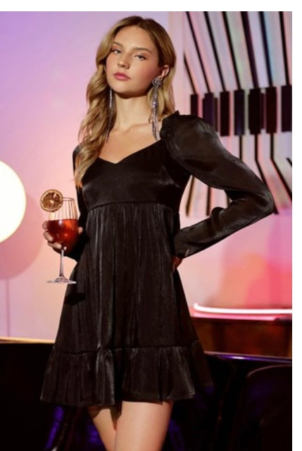 Metallic babydoll black dress